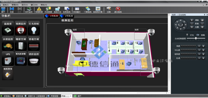 环境监控系统根据用户对机房管理的需求,能对各不同地域的机房场地的动力环境实现集中监控,包括对机房动力系统(包括配电柜、UPS)、环境系统(机房专用精密空调、漏水检测、温湿度监测、消防监测、新风监测),具有完善的监测和控制功能,更为重要的是要融合了机房的管理措施,对发生的各种事件都结合机房的具体情况非常务实的给出处理信息,提示值班人员进行操作。实现了机房设备的统一监控,智能化实时语音电话报警,实时事件记录;减轻机房维护人员负担,有效提高系统的可靠性,清楚处理各种事件关系,实现机房可靠的学管理。