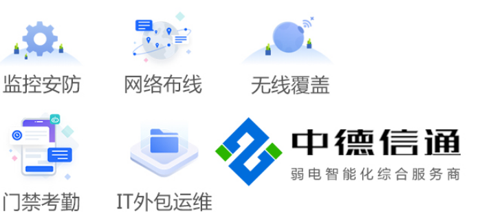 1、综合布线 2、视频监控3、门禁考勤一卡通 4、音响广播系统 5、电话布线 6、网络布线 7、 交换机-路由器-程控电话-宽带接入安装调试!