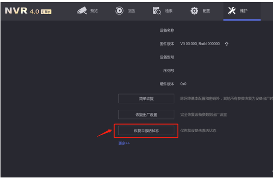 在登录界面,切换用户,进入维护,点击“恢复未激活状态”,恢复后重新激活设备,设置密码即可。